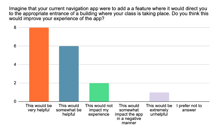 Throughout this journey over the past four months, I learned the importance of deeply understanding the needs and challenges of students when it comes to campus navigation. This deep dive allowed my team to pinpoint the most essential features to incorporate into our design, ensuring an intuitive and seamless user experience. We discovered that simplicity and accuracy are key factors in enhancing campus navigation, and the importance of looking in the direction of the user for support.